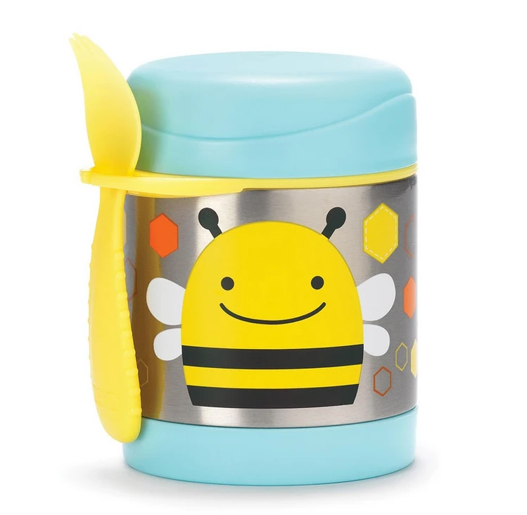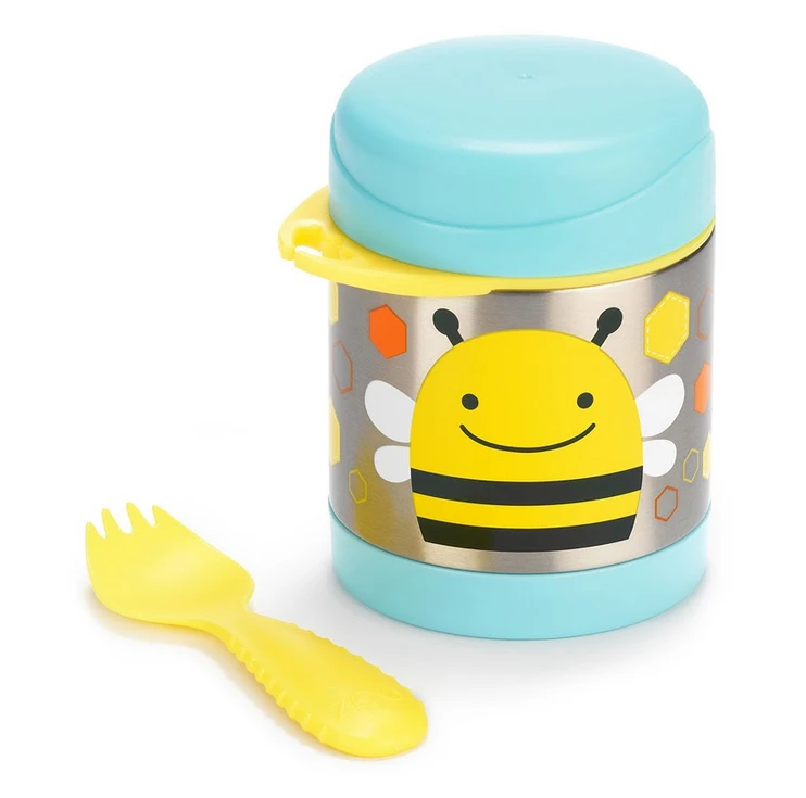 This colorful stainless steel container keeps kid-sized portions warm or cold. Store the spork, or most utensils, in the handy built-in holder so your little one is ready for meals on-the-go.