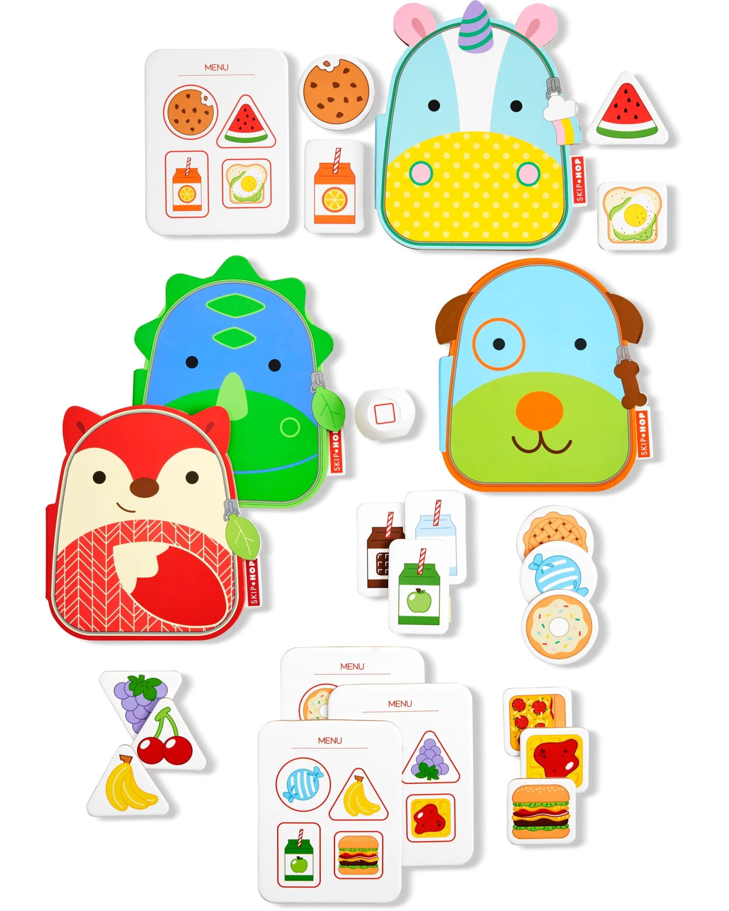 t’s fun to play with your food! Offering four ways to play, this cute game features large and colorful pieces and encourages matching and memory skills. Roll the dice and pack fruits, drinks, sandwiches and more. Whoever packs their lunch bag first wins!